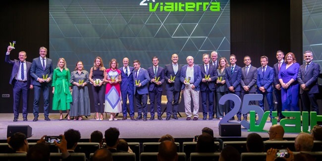 Venticinco años de historia de Vialterra conectando sueños, proyectos profesionales, educativos, sanitarios y culturales se trajeron al escenario de la gala de celebración de un aniversario lleno de reconocimientos y sorpresas el 23 de octubre. La Demarcación de Andalucía, Ceuta y Melilla del Colegio de Ingenieros de Caminos, Canales y Puertos estaba invitada a esta emotiva y cercana celebración a la que asistió el decano, Juan Manuel Medina Torres, acompañado del secretario José Luis Sanjuán Bianchi; el representante provincial en Jaén, Ramón Luis Carpena Morales; y el vocal de la Junta Rectora Alejandro Castillo Linares.